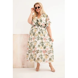 Dámske plus size šaty s kvetinovým vzorom a khaki kravatou