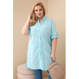 • Dámské šaty Plus Size s výšivkou a ohrnutým rukávem mátová