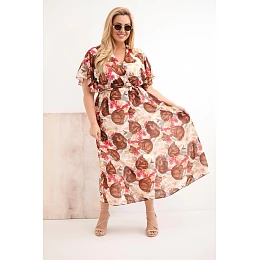 Dámske šaty nadrozmernej veľkosti v kvetinovom vzore s kravatami hnedé