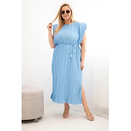 Dámské šaty Plus Size viskózové plisované s vázáním modrá