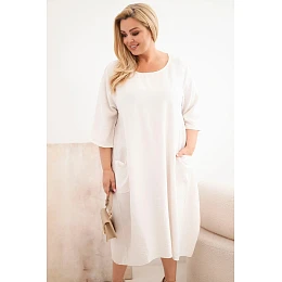 Dámske plus veľkosť viskózové šaty s vreckami a krátkymi rukávmi béžová