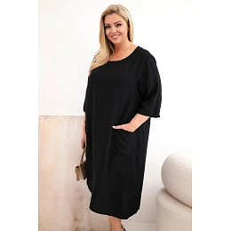 Dámske plus veľkosť viskózové šaty s vreckami krátkymi rukávmi čierne