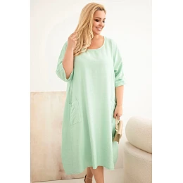 Dámske plus veľkosť viskózové šaty s vreckami s krátkymi rukávmi Dark Mint