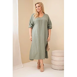 Dámské šaty plus size z bavlněného mušelínu s výstřihem do V khaki