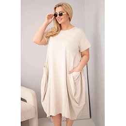 Dámske bavlnené šaty s vreckami v béžovej farbe