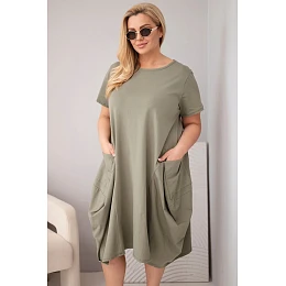 Tieto moderné plus size dámske šaty s voľným oversize strihom sú ideálnou voľbou pre ženy, ktoré si v každodennom stylingu cenia pohodlie a módu. Minimalistický dizajn v kombinácii s funkčnými detailmi zaručuje, že tento model sa bude dobre hodiť na bežné nosenie aj neformálne príležitosti. Šaty majú krátke rukávy a klasický okrúhly výstrih, čo im dodáva univerzálny charakter.