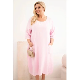 Plus veľkosť dámske viskózové šaty s vreckami a krátkymi rukávmi Candy Pink