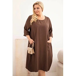 Dámske plus size viskózové šaty s vreckami a krátkymi rukávmi hnedé