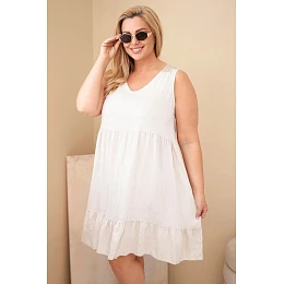 Dámske šaty nadmernej veľkosti z viskózy s čipkou bez rukávov v béžovej farbe