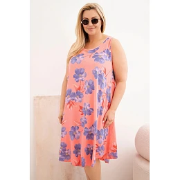 Dámské šaty Plus Size z viskózy s květinami na ramínkách malinová