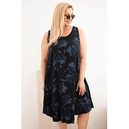 Dámské šaty Plus Size z viskózy s květinovým potiskem na ramínkách černá