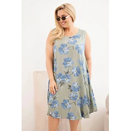 Dámské šaty plus size z viskózy s květinovým vzorem na ramínkách khaki
