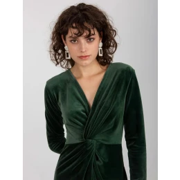 Tmavě zelené velurové uzlíkové koktejlové šaty značky RUE PARIS