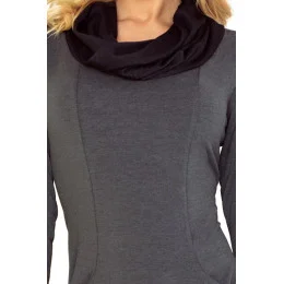 Dámske šaty s vreckami, dlhým rukávom a rolákom tmavo šedé - Tmavo šedá - Numoco