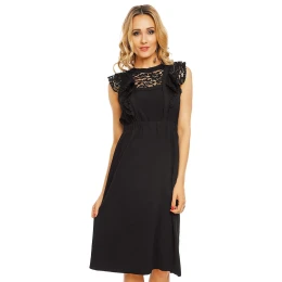 Dámske šaty s čipkovaným rukávom stredne dlhé čierne - Čierna - Elli White