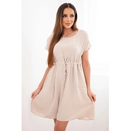 Dámské šaty s krátkým rukávem a páskem v pase béžová