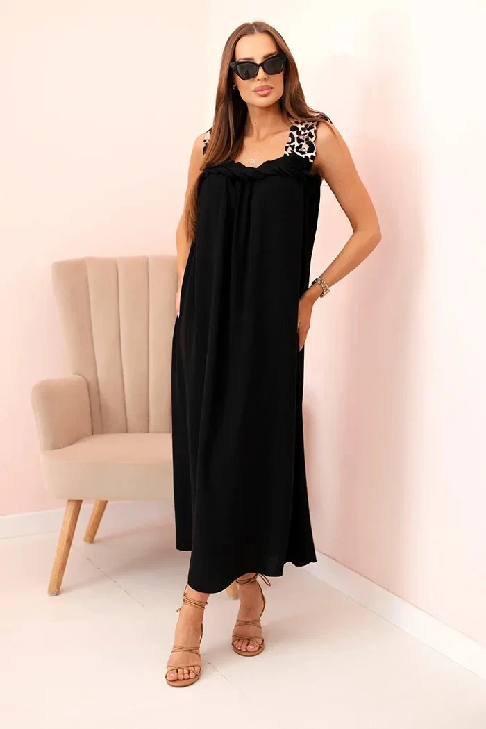 - Strih: voľný, maxi, s volánom vo výstrihu