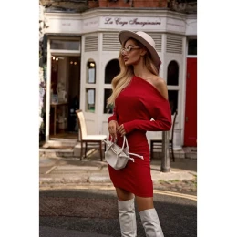 Dámske šaty so spadnutými ramenami M818 červené - Moe