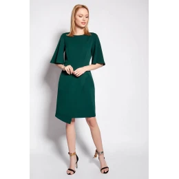 Šaty s vypasovaným spodným dielom, dole prekryté. Šaty sú v páse prestrihnuté, bez vreciek. Šaty s krátkymi motýlími rukávmi.