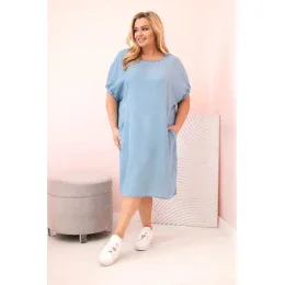 Dámske šaty v nadmernej veľkosti z lyocellu s opaskom a vreckami Light Denim