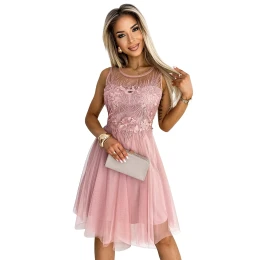 dámské šaty v pudrově růžové barvě s výšivkou a jemným model 19444225 - numoco basic