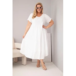 Dámske plus size šaty s krátkymi rukávmi a volánom z ľahkej viskózy bielej farby