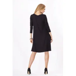 Dámske šaty voľný strih 3/4 rukáv vhodné aj pre tehotné stredne dlhé grafitové - Čierna - Beyo