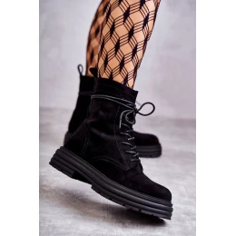 Dámské semišové boty se zavazováním Černé model 21598522 - S.Barski