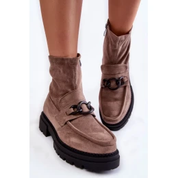 dámske čižmy sa skvele hodia k mnohým štýlom! Sú vyrobené z ekologickej kože. Na boku zvršku majú zips, vďaka ktorému sa ľahko obúvajú. Čižmy sú posadené na plochom podpätku s platformou lemovanou niťou. Vo vnútri, vo výške chodidla , sú zateplené dekou, ktorá je príjemná na dotyk. Podrážka trapper zaručuje stabilitu pri každom kroku