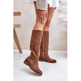 Zamszowe Kozaki Damskie Do Połowy Łydki Na Zamek Lewski 3616 Brązowe