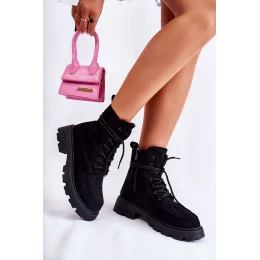 Dámské semišové kozačky zavazované Černá model 21593395 - Boto