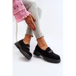 Zamszowe Mokasyny Damskie Z Ozdobą Czarne Loraleima