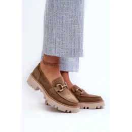 Zamszowe Mokasyny Damskie Z Ozdobą D&A TW117 Brązowe