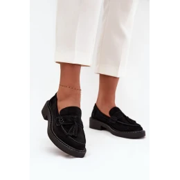 Dámská mokasíny vyrobené z přírodního semiše. Jsou umístěny na ploché stabilní podrážce. Šňůrky jim dodávají jedinečný půvab. Tyto mokasíny budou ideálním doplňkem mnoha různých stylizací, jak casualových, tak i elegantních. Při výběru velikosti se řiďte tabulkou velikostí.