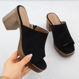 Dámske semišové žabky na ihličkách čierne Potocki 54309