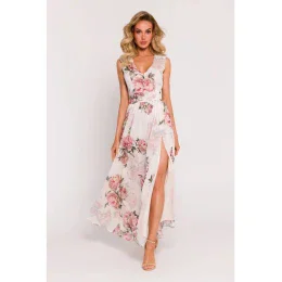 Dámské šifonové šaty model 21105543 model 2 Ecru s květy - Moe