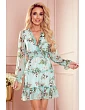421-2 Šifónové šaty s volánmi a širokou gumou - KVETY na zelenom pozadí