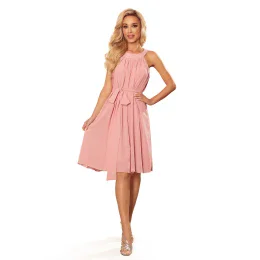 Pridanie recenzie k dámské šifonové šaty v pudrově růžové barvě s vázáním model 15740646 - numoco
