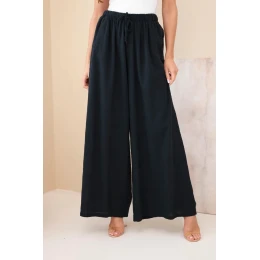 Dámske široké bavlnené nohavice s elastickým pásom čierne