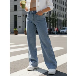 Jeansy sprawdzają się w stylizacjach miejskich z T-shirtem i sneakersami oraz w zestawach z krótką kurtką lub koszulą. Szeroka nogawka dobrze współgra z obuwiem na grubszej podeszwie, optycznie równoważąc sylwetkę. Krój pozwala nosić je na co dzień, na spacery po mieście oraz w luźniejszych stylizacjach weekendowych.