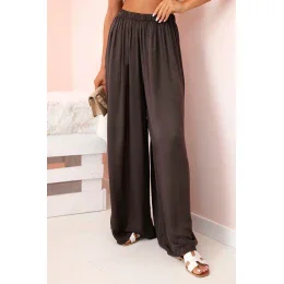 Dámske široké viskózové nohavice s elastickým pásom hnedé