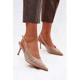 Dámské sandály z eko semiše jsou elegantní volbou pro ženy, které ocení styl a ženský charakter. Model se vyznačuje špičatými nosky, které opticky zeštíhlují nohu. Tenký podpatek typu jehla krásně tvaruje postavu, prodlužuje nohy a dodává lehkost každému outfitu. Zapínání na přezku s nastavitelým páskem umožňuje dokonalé přizpůsobení noze a zajišťuje pohodlí při nošení. Ideální volba na elegantní vycházky, slavnostní příležitosti a večerní akce. Při výběru velikosti se řiďte tabulkou velikostí.