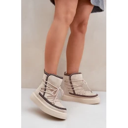 Śniegowce Damskie Z Haftem Na Platformie Jasnobeżowe Naleris