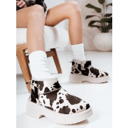 Botki damskie zamszowe w zwierzęcy wzrór ZY1285 brązowe łaty