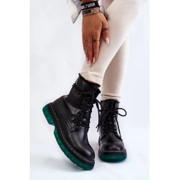 Dámské šněrovací boty se zelenou podrážkou černá model 19988095 - Kesi