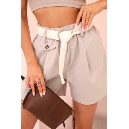 Dámske šortky s vysokým pásom a opaskom tmavo béžové