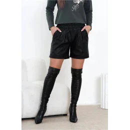 Dámske šortky z ekoóry. Majú elastický pás. Nohavice sú zakončené manžetou, ktorá je dodatočnou ozdobou šortiek. Ideálne na stretnutia, večierky, ako aj na blížiace sa sviatky.