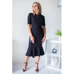 Přiléhavé šaty s ozdobným zapínáním na zip. Šaty s rukávy po lokty a ozdobným volánem. Ideální pro mnoho příležitostí.