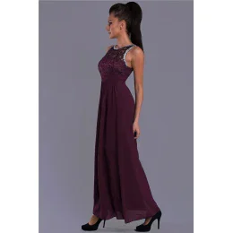 Dámské společenské šaty EVA LOLA s krajkou a kamínky dlouhé vínové