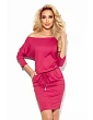 Model je ušitý z pružného materiálu s ľahko semišovou štruktúrou. Tieto šaty značky Numoco sú poľským výrobkom a sú k dostaniu v malinovej farbe.